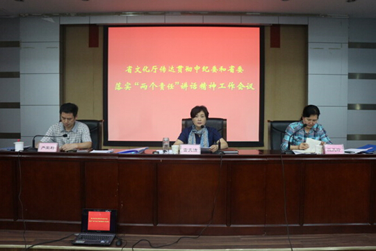 为切实贯彻中纪委和省委要求,进一步推进落实党风廉政建设“两个责任”,8月28日,省文化厅召开了厅系统传达贯彻中纪委和省委落实“两个责任”讲话精神工作会议。