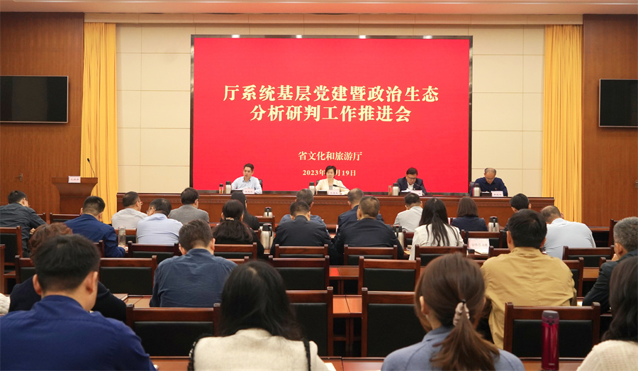 10月19日,省文化和旅游厅召开基层党建暨政治生态分析研判工作推进会,深入推进厅系统基层党建和政治生态分析研判工作,进一步压紧压实全面从严治党主体责任。厅党组书记、厅长李述永出席会议并讲话。厅党组成员、副厅长徐勇主持会议。厅公共服务处、文化市场综合执法监督处、省京剧院、省图书馆、省文物考古研究院、省文化和旅游质量监测中心等6家基层党组织在会上进行交流发言。