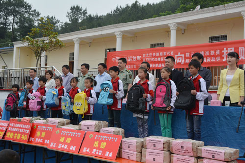 5月27日上午,一场热烈而简朴的捐赠仪式在蕲春县赤东镇陈云小学举行,中国人民解放军驻武汉铁路局军代处、中国人民解放军陆军驻武汉地区军代室、江苏洋河酒厂及江苏高正物业管理公司四家单位代表,向陈云村和陈云小学捐赠篮球架1付,图书2000余册,图书架、办公桌椅多组及现金6万元,共计价值12万元,军地携手助力精准扶贫。
