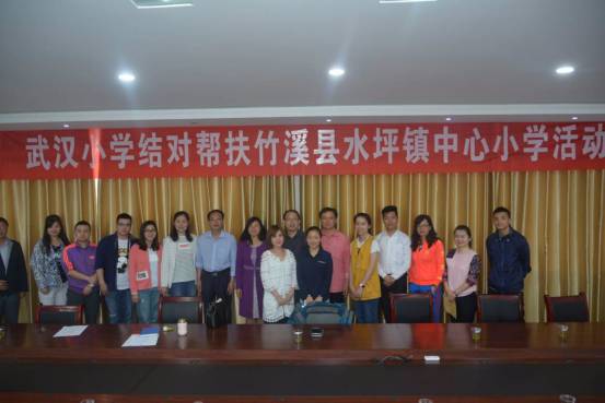 李强校长与水坪镇中心小学校长杨广源签订《武汉小学结对帮扶竹溪县水坪镇中心小学意向书》,达成从武汉小学选派优秀教师到水坪中心小学支教、安排专家教师到水坪中心小学开展专题讲座等教学培训活动、提供优质的在线视频教育资源等长效帮扶意向,为今后开展更多更好的帮教活动做好铺垫。李强一行还观看了该校学生表演的《鼓舞童心》《读唐诗》等文艺节目,并捐赠了一批图书和体育用品。