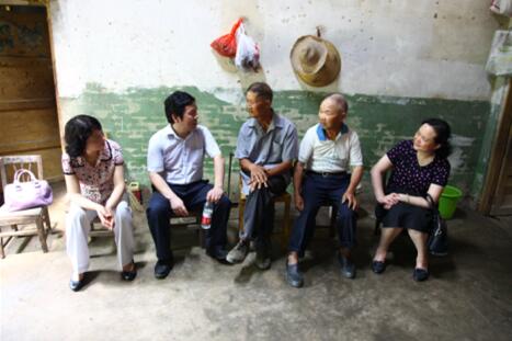 在低保户皮兰阶家,张世华、李新玲一行与他坐在堂屋里,面对面话家常。说起以前的生活,皮兰阶连连皱眉。他今年68岁了,老伴已71岁。他们是年老后组合的家庭,两人都患有慢性病,常年吃药。目前他们暂借住在侄子家的房子里,靠着耕种三亩地过日子。今年村里为他们争取危房改造资金,盖了80多平米的安置房,他们再也不愁没地方住了。如今,两位老人每月能拿到280元的低保金。去年工作队来了,帮助村民开展清洁村庄建设,皮兰阶可以在村里打零工,迄今已挣了1000多元。说起现在的生活,他开怀地笑了:“党的政策好,托党的福!真心感谢工作队为我们造福!”张世华要求工作队员和帮扶支部为他们争取更多医疗救助和增收渠道,把党和政府对贫困老人的关怀及时送到,让他们老有所养、老有所乐。