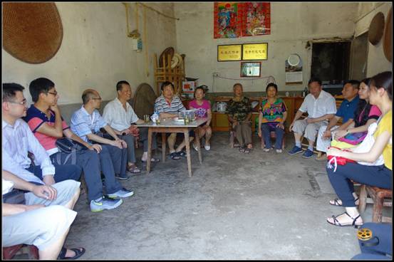扶贫小组首先到达流溪村老党员代表家,并在此遇到了流溪村党总支书记陈书记,扶贫小组各位党员与老乡们围坐一堂,听取陈书记及老两口对当地贫困情况的介绍,了解到当地主要贫困原因为“因病而贫”、“因学而贫”及人多地少,“一方水土难以养活一方人”。各位党员与老乡们亲切交谈,深入了解当地的困难情况后,纷纷慷慨解囊,主动为老乡提供一定的经济支援。