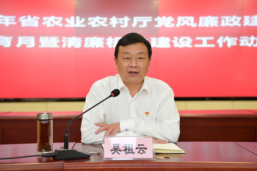 会上,吴祖云同志传达了全省警示教育暨清廉湖北建设工作推进会主要情况,解读了省委印发的2021年宣教月、清廉机关建设文件精神,并对农业农村厅贯彻落实工作提出要求。