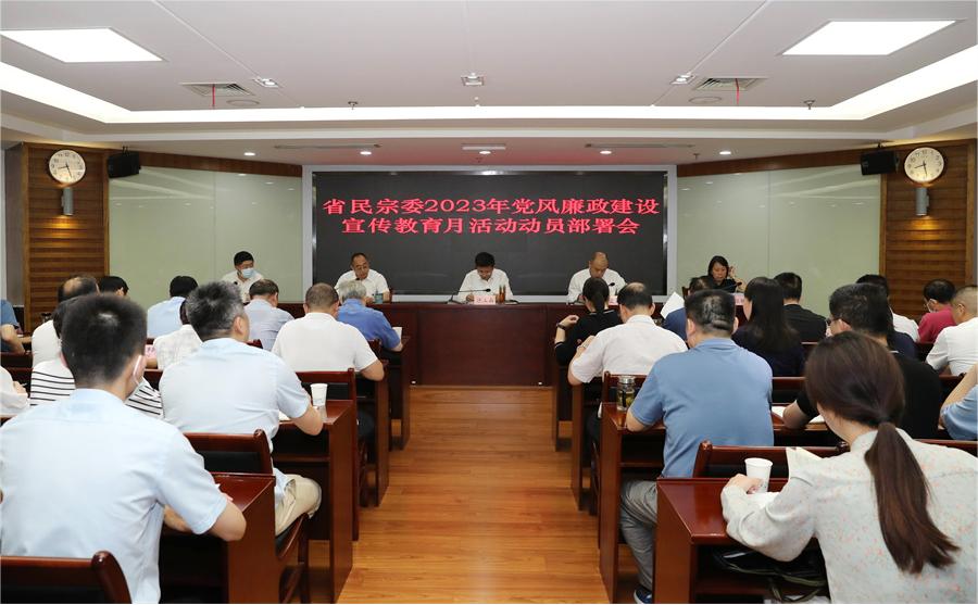 6月20日,湖北省民宗委召开2023年党风廉政建设宣传教育月活动动员部署会。会议深入学习习近平总书记关于全面从严治党、党风廉政建设和反腐败斗争重要论述,集中传达学习省委关于深化党员干部纪律教育的意见和省纪委关于违规吃喝、工程建设领域腐败典型案例通报精神。委党组书记、主任沙玉山以“加强纪律教育,培养纪律自觉”为题,面向全体党员、干部讲廉政党课并进行动员部署。委党组成员、副主任李爱旻、赵军章,一级巡视员吴红娅出席会议。