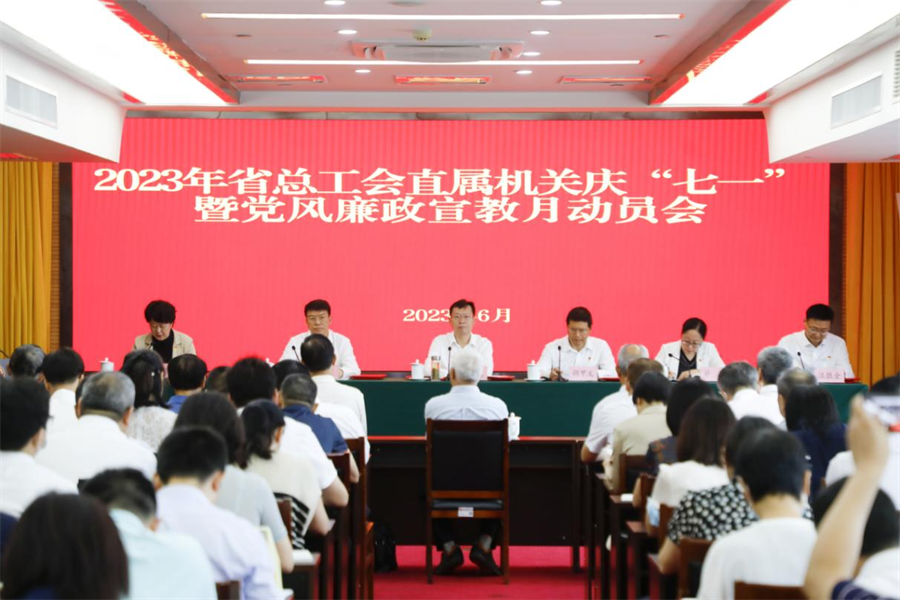 6月30日上午,省总工会召开庆“七一”表彰大会暨党风廉政建设宣教月活动动员会,隆重庆祝中国共产党成立102周年,弘扬伟大建党精神,深入推进机关党的建设,对省总工会2023年党风廉政建设宣教月活动进行动员部署,开展警示教育,扎实推进清廉工会建设,纵深推进全面从严治党工作。省总工会党组成员、副主席提名人选胡东红主持会议。省总工会党组成员、副主席胡甲文宣读《关于表彰省总工会2023年度优秀共产党员、优秀党务工作者和先进基层党组织的决定》。省总工会党组成员、副主席提名人选冯家欣宣读《关于2023年度“支部工作法”评审结果的通报》。省纪委监委驻省总工会纪检监察组组长、省总工会党组成员许瑶传达全省警示教育大会精神并提要求。省总工会党组书记、常务副主席陈惠霞作党风廉政建设宣教月活动动员讲话并讲党课。