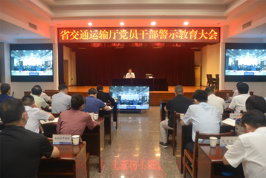 7月6日,省交通运输厅召开党员干部警示教育大会,深入学习贯彻党的二十大精神和习近平总书记关于加强党的纪律建设的重要论述,认真落实省委工作要求,进一步增强党员干部纪律意识和规矩意识,为推动交通运输事业高质量发展提供坚强纪律保障。厅党组书记、厅长钟芝清给全厅系统党员干部讲廉政党课。厅党组成员、副厅长汪凡非主持会议。