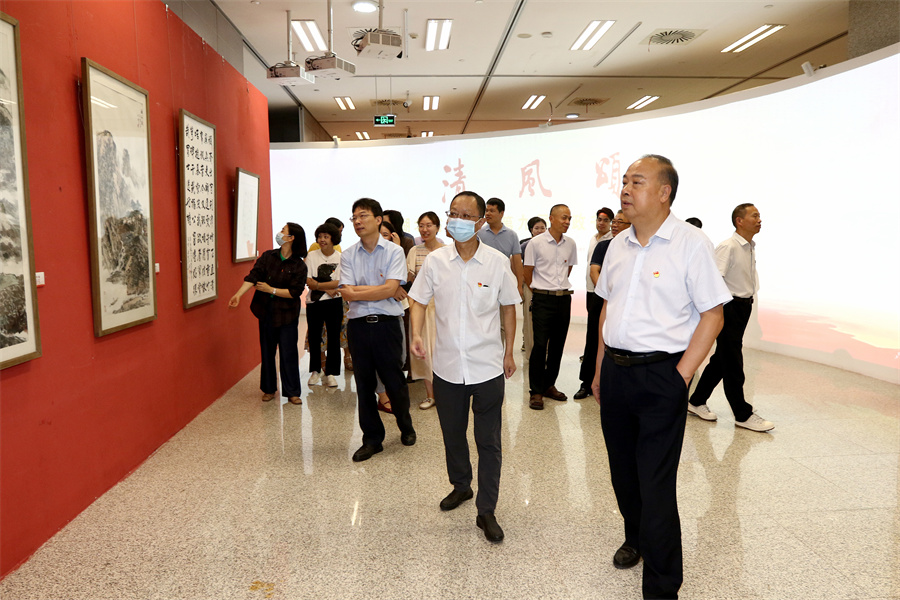 7月17日,省委党史研究室组织全室党员干部职工赴省图书馆参观省直机关第九届“清风颂”廉政书画作品展,在丹青翰墨中接受廉政教育,增强纪律自觉。室副主任王洲洋、钟文,室一级巡视员别业超参加活动。