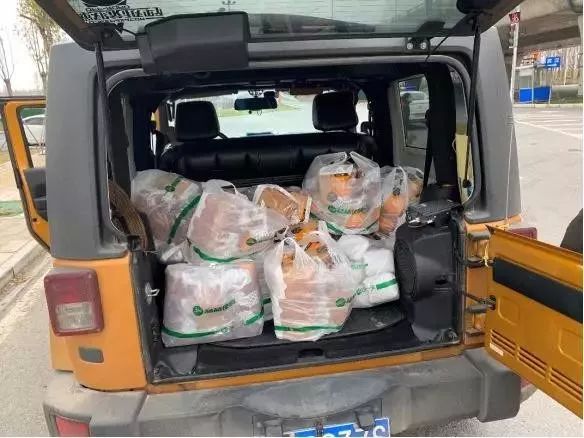 志愿者前往位于黄陂区的仟吉公司将600多袋切片面包送往汉口医院