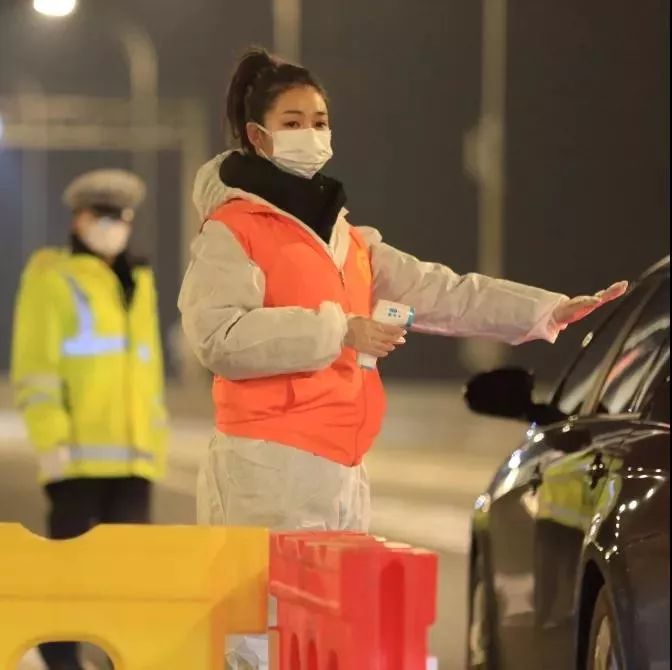 青山区青年志愿者在各个大桥和收费站,检测过往车辆人员体温