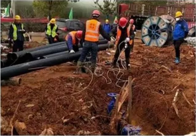 蔡甸区水务局青年突击队铺设火神山医院管网