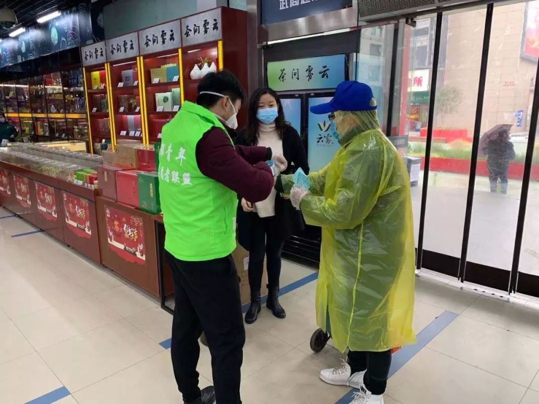 车都青年应急志愿服务队主动请缨,奔赴中百、武商、沃尔玛等大型商超提供志愿服务,承担了区内8大超市体温测量和秩序维持工作,他们表示誓做车都居民“菜篮子”的守护者,为本区居民正常生活保驾护航。