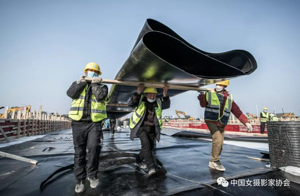 1月26日,大年初二,火神山医院HDPE膜铺设。黄蕾摄影