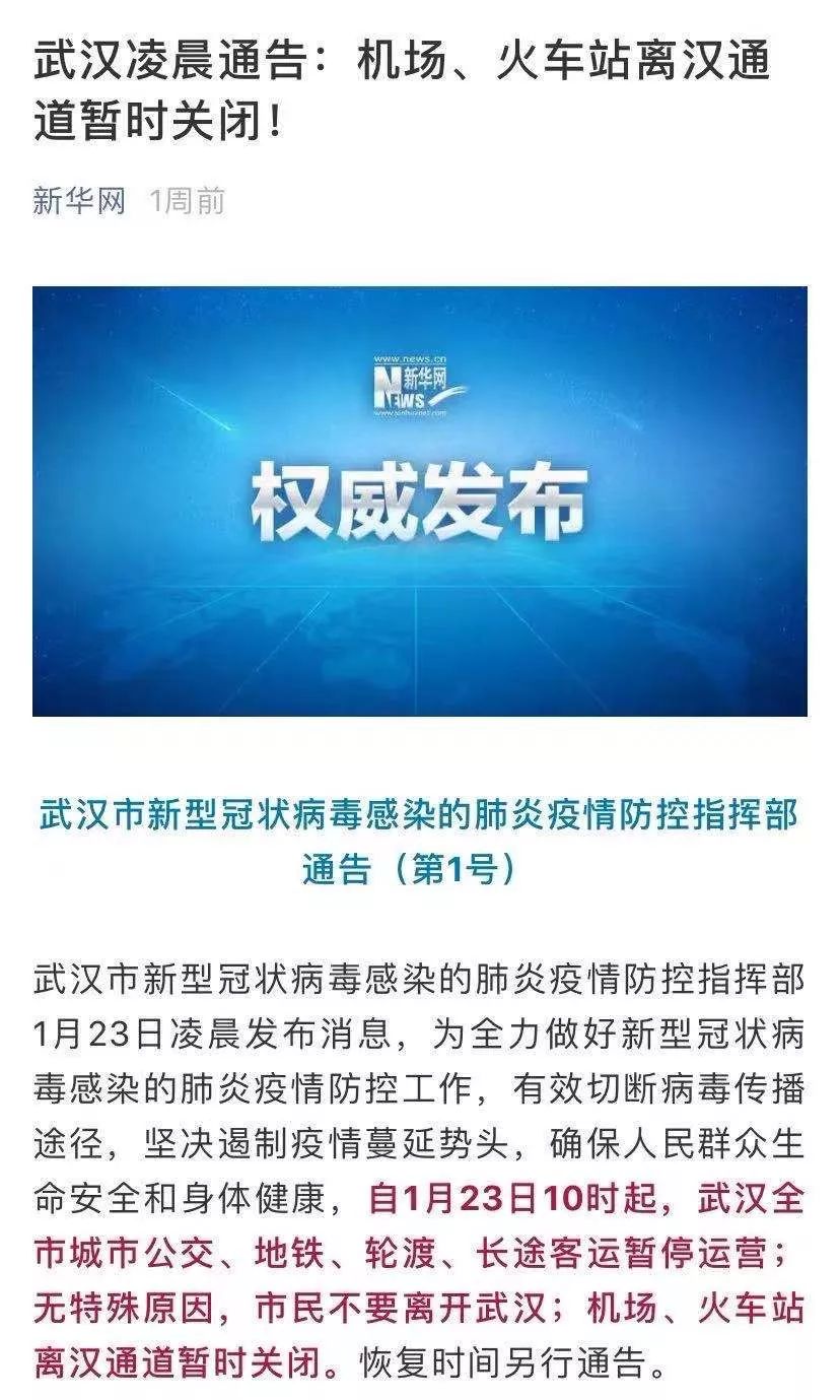 早上6点,睡梦中的我被手机铃声惊醒,钉钉通知因受疫情影响,武汉要关闭所有离汉通道,武汉要“封城”了!我一下坐了起来,想不到一夜之间,发生了天翻地覆的变化,关于疫情的消息就像定时炸弹,今晚突然引爆了。上午,通过工作群看到天河机场高速通道也封闭了,我随即跟支队联系,要求回来和巡特警的兄弟们一起在一线战斗,支队领导让我安心在家过年,可我却怎么都放心不下。随后我翻看了23、24日的火车票,全部显示售空状态。23日晚,返汉列车停运。