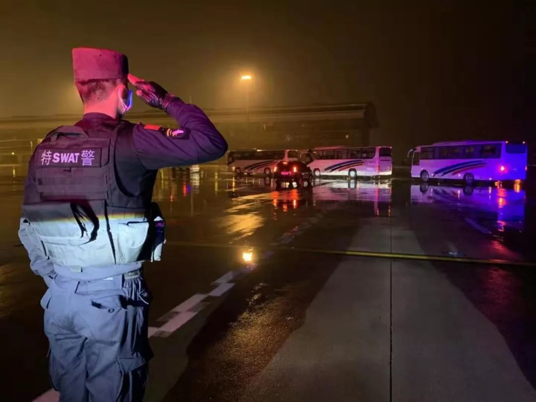 今天是忙碌而又充实的一天,早上来自沈阳、西宁、桂林、无锡的795名军队医护人员乘8架军机驰援武汉,很荣幸能够参与此次保障任务。上午8点,我与一名同事一左一右跨立在五号道口前,守护载有医护人员和物资的车队通过。天气虽然寒冷,但我感觉我比平时任何一次队列训练站的都要直。眼神的余光看到了正在跑道上集结的医护人员,心中油然而生出一种敬意,他们放弃休息,离开家人,不顾自身安危前往武汉支援,怎能不让我敬佩!大概过了1个小时,车队向道口驶来。“立正!敬礼!”伴随着鸣笛,车辆一辆辆驶过,我的眼眶不禁湿润。
