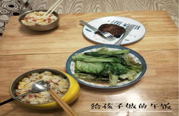 他身兼数职,首先是单位的工作,责任重大不容闪失;其次,组织家属院小区物资采购,任务繁重不容迟缓;同时,还要下沉社区帮助工作,职责所系不容懈怠。在此情况下,只能见缝插针抽时间为两个孩子准备一日三餐。经常因为时间紧只能简单凑合,有时甚至仅仅炒个饭对付一下。剩下的时间,孩子只能扔在家里放养了。