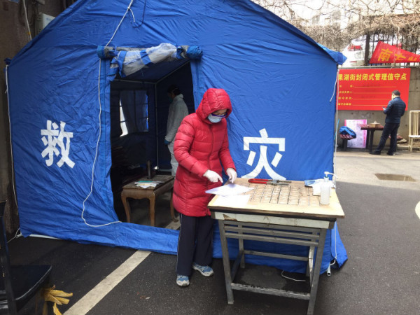 巡察办万丽兰是下沉姚家岭社区娘子军中年纪最大的,曾做过肾上腺肿瘤切除术,接到工作任务后全力投入,连续八天在洪山宾馆小区配合保安值守和管控,协助网格员核查80多户居民(租户)的居家人数、身体状况,特别是独居老人的生活需求和联系电话,作好记录,还参与社区援助物资的卸载等工作