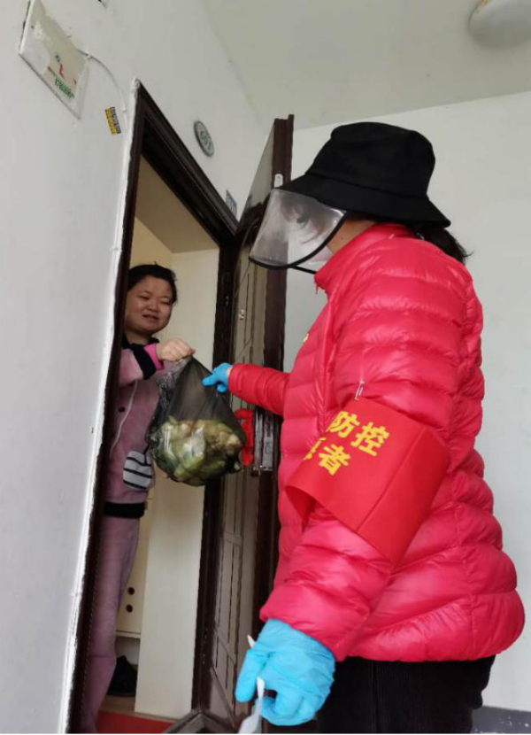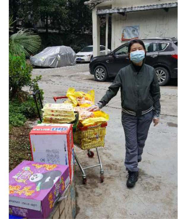 曾柳为社区居民送生活物资