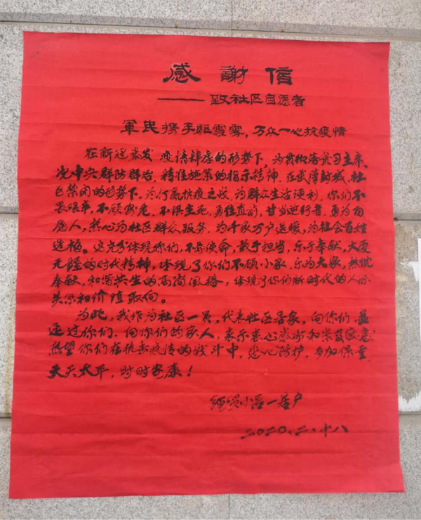 社区居民给商务厅送来感谢信