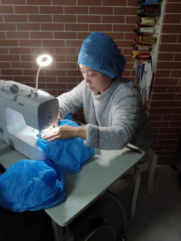 方红为社区志愿者缝纫防护帽