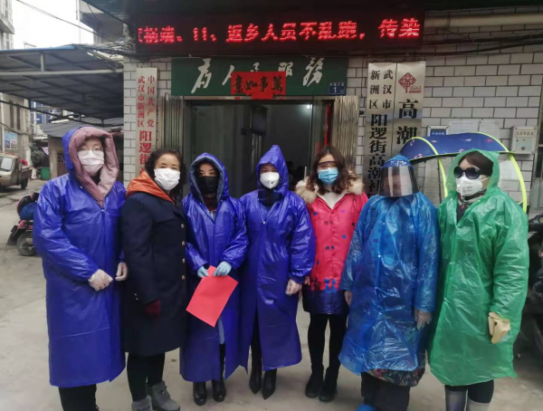 2月7日,新洲区市场监管局组织基层市场监管所叶彩萍、朱晓莉、张琴、管惠平、金保红、周玉梅、王惠文等7名女同志,成立下沉工作组,到辖区阳逻街高潮社区参加疫情防控战。7人家里各有各的情况,但没有一个提要求,当天就进社区参加疫情防控工作。
