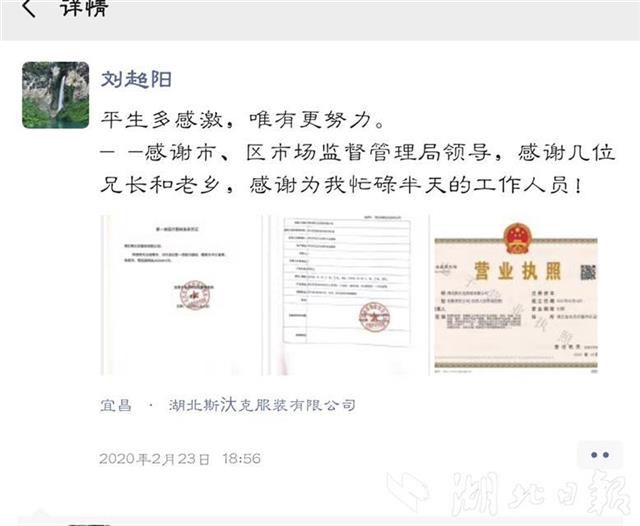 湖北斯汏克服装有限公司是猇亭的一家服装企业,准备转产疫情防控物资。按照正常流程,需要先在营业执照上增加相关经营范围,再办理第一类医疗器械备案,这可能要耗费几天时间。