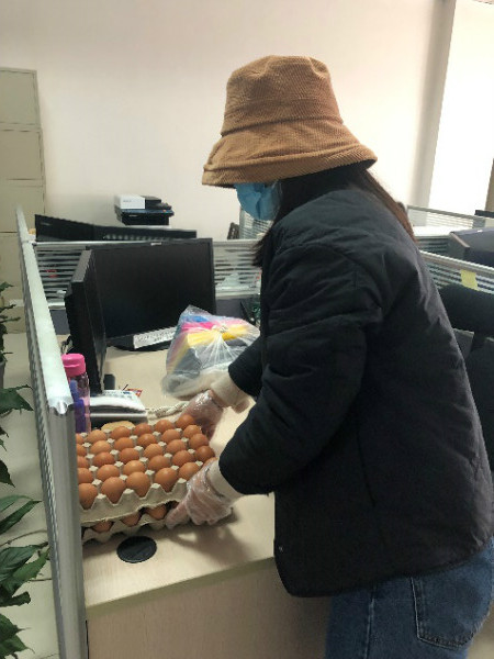 刘文婷作为气象台青年防疫志愿队的一员,承担起了台里团购物资的统计和发放。“鸡蛋怎么拼?”“怎么付款?”“什么时候到货?”“质量有没有保障?” ……刘文婷的手机震动不停,在团购初期,没有团购经验,一腔热忱的她组织了两次台里的鸡蛋团购。从统计、收款、物流跟进、收货到分发,她尽心尽力,俨然称自己是“卖鸡蛋的小刘”。每批鸡蛋1080个,分发起来费时费力,有同事对她说,“你不用分发到每个人的桌子上,这样多累啊!”,她却说“我费点力气没事,能让大家更安全”。省局的团购步入正轨后,刘文婷更是严肃对待,通知到位、统计精确、反馈及时,尽可能满足职工的需求。她经常说,“现在食物就是大事,我可不能掉以轻心。”