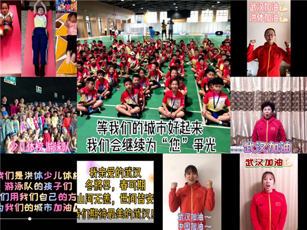 3月8日,少儿体校游泳队的教练员们制作了小视频,内容为“特殊时期,不一样的女神节”,教练员和小队员们齐齐亮相,为武汉加油,为洪体加油!