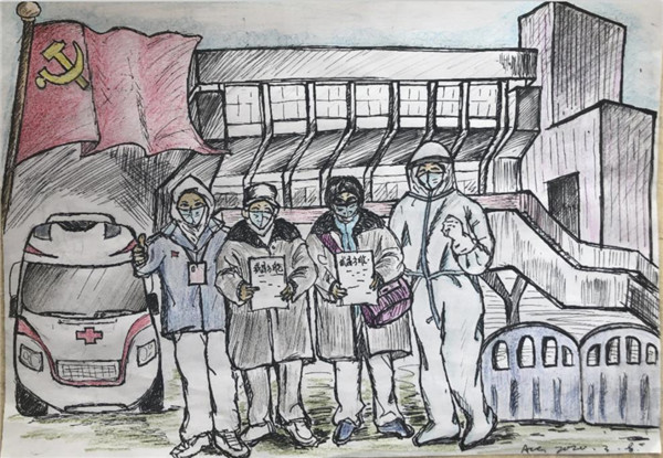 (袁君绘制的抗疫一线医护人员和洪山中心保障人员)