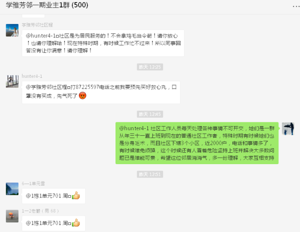 从对接平台商超物品清单,到整理制作接龙统计小程序,再到核对金额收付款下单、收货卸货分货,还有为避免人员密集导致交叉感染而区分楼栋制定领取物资排序,他件件事情亲力亲为,2月14日至今,累计为社区居民组织生活物资团购10批,平均每2天一次,服务群众837人次,采购物资2689件,价值9万余元;协助居民解决团购物资售后问题31人次。得到了小区居民的交口称赞。至于其它类似为出行不便居民买药送菜,更是每日工作的常态。