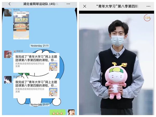新冠肺炎疫情防控期间,湖北省体育局奥体片区团委组织片区运动员在做好居家训练的同时,通过融媒体加强疫情防控宣传,开展网络线上学习,突出做好运动员的爱国主义教育和文化知识学习工作,汇聚起奥体片区抗击疫情的青少年力量。