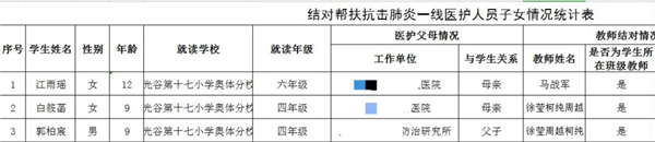 奥体分校老师同步开展结对帮扶工作,重点关注家长为一线医护人员的学生,统计学生信息并分配结对老师。奥体片区团委每日密切关注此类学生的线上学习情况和心理健康,全力配合学校保证学生们以积极阳光的心情度过特殊时期。
