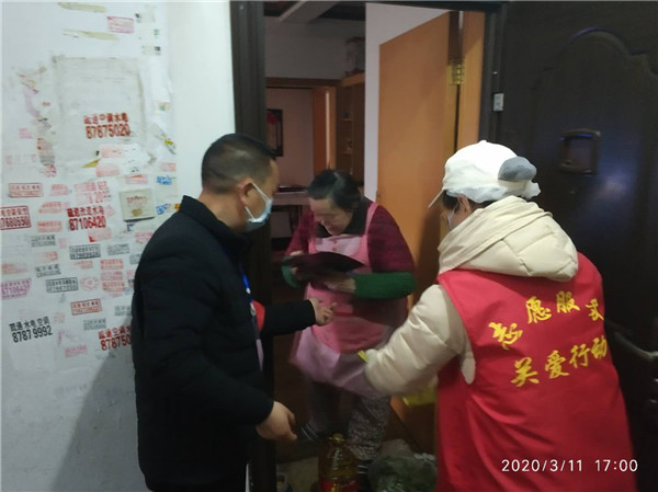 3月1日,我又加入了厅支援马庄苑社区工作队,和省聋儿康复中心范洪峰一起参加荣军医院生活小区的封控工作。这是一个有着296户、536人的老旧小区,因为荣军医院是新冠肺炎的定点收治医院,每天进出人员及车辆达到100人次(辆)以上,特别是医务人员较多,增加了交叉感染的风险,也给小区封控带来一定难度。对于一些出入证件不符合要求的人员,我们既坚持原则,又具有人情味地耐心劝阻,有效地实现了对小区的封控。小区封控实行24小时值守,白班、晚班、夜班轮流倒,特别是夜班,从晚上10点半到第二天早上8点半,晚上温度较低,风大雨大的时候,坐也坐不了,站也站不住,实在困得不行就在车上眯一会,冷的时候在小区操场跑热了再休息,但大家从未叫苦叫累,始终坚守在工作岗位。值守期间,我们在做好本职工作的同时,重点关注困难户、孤寡(独居)老人等民政服务对象。我们每天都去小区几户孤寡(独居)老人家,看老人家有什么需要,为孤寡老人严莲清送口罩、倒垃圾,多次上门为独居老人胡双荣联系煤气公司换煤气,将厅机关党委采购的排骨等生活物资送到老人家中。