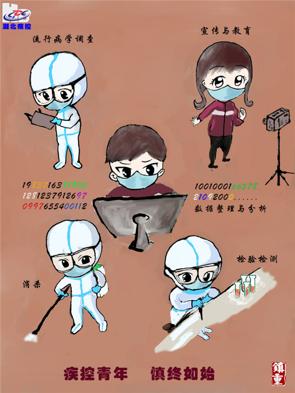 “90后”的镇重,在活动现场,用手绘的形式向战斗在第一线的疾控青年致以最崇高的敬意!