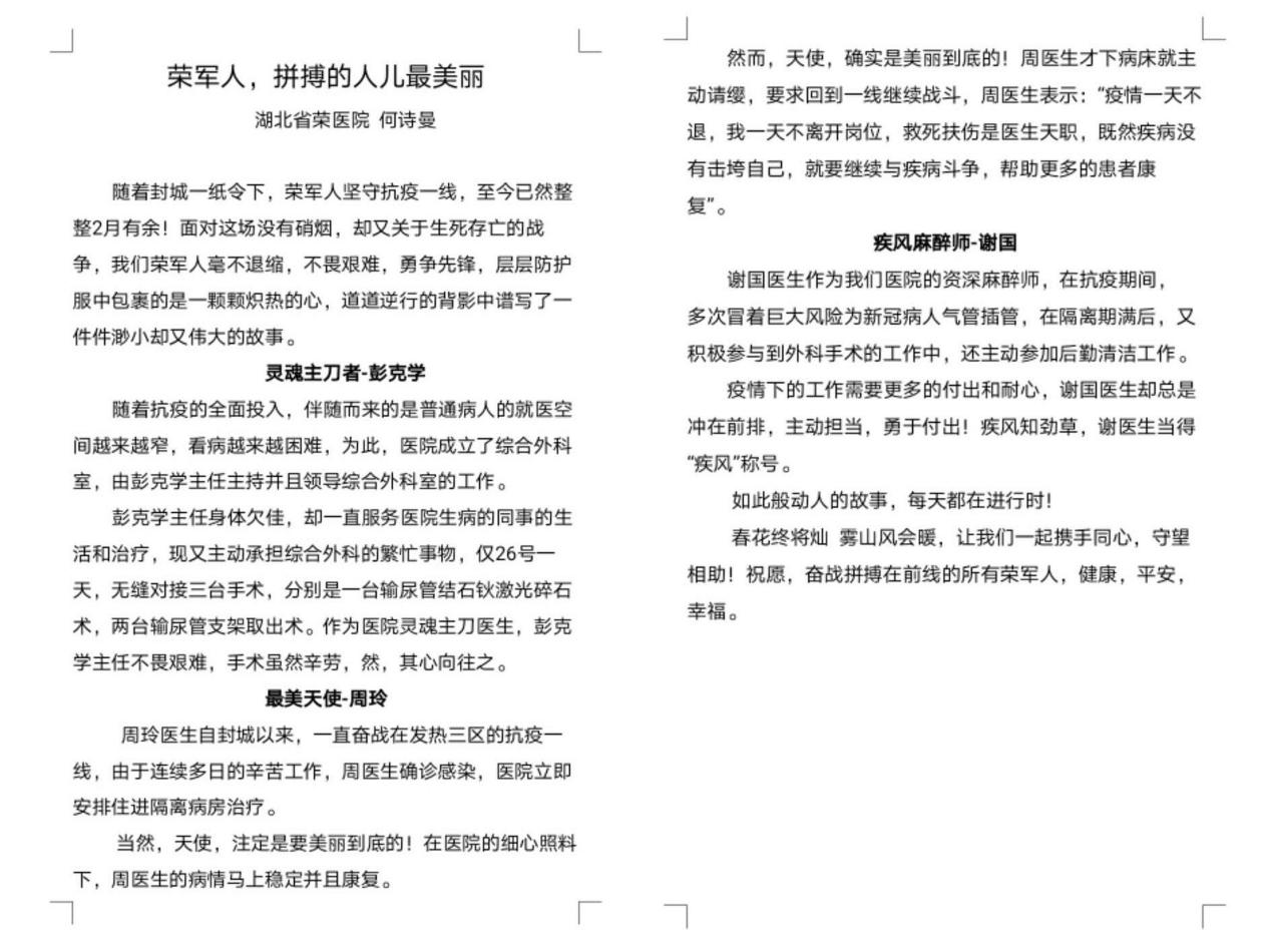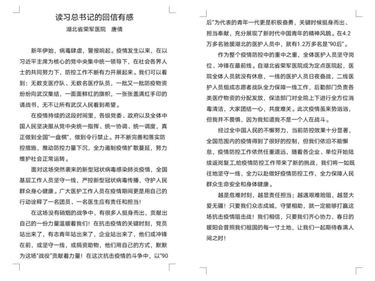 图为湖北省荣军医院青年团员撰写的学习心得体会