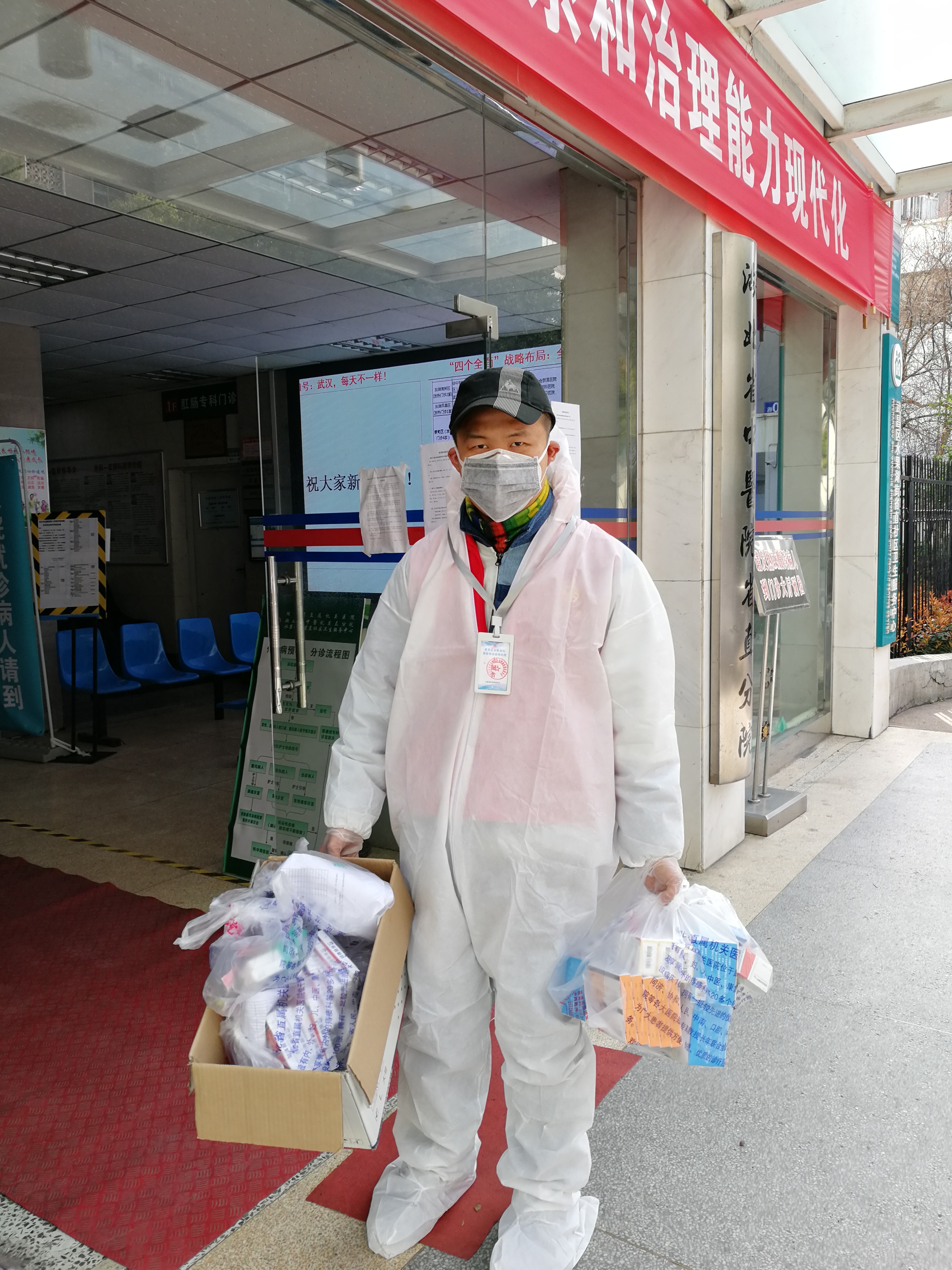 2月8日,他的志愿者审核通过了,被就近指派到张家湾社区,成为了一名非党员的社区志愿者,他笑着回忆说那天晚上高兴得一宿没睡着,他找到组织了。第二天,他早早地来到社区,等候分配任务。2月11日,武汉所有住宅小区实行封闭管理,社区和下沉党员防疫队组织了各类团购解决了居民的基本生活。可是张家湾小区情况比较复杂,老人比例大,许多慢性病患者需要长期服药,于是采买药的任务就被分配到了钱军的身上。