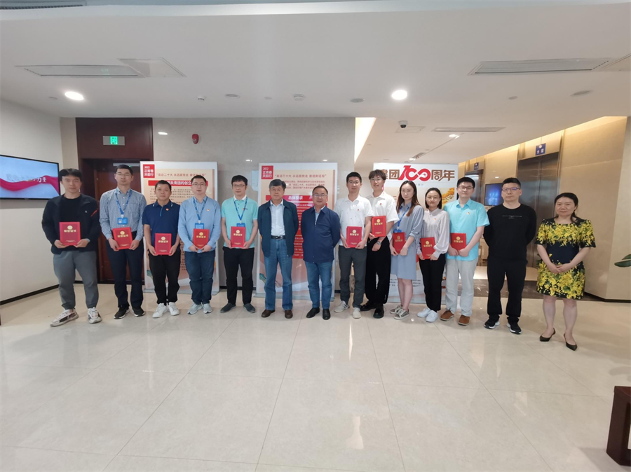 会后,参会院领导与新当选的2022年度“十佳青年”合影留念。院职能部门主要负责人,院团委委员、各团支部书记、十佳青年以及35岁以下青年职工代表参加会议。