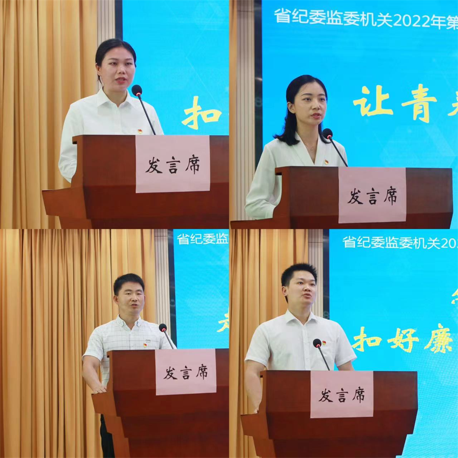 在中国共产主义青年团成立100周年之际,省纪委监委机关以“扣好廉洁从政‘第一粒扣子’”为主题举办2022年第一期青年论坛。12名发言人结合学习体会、成长经历、工作岗位、典型案例等,开展青年干部研讨交流。省委常委、省纪委书记、省监委主任侯淅珉及在家的委领导出席活动。