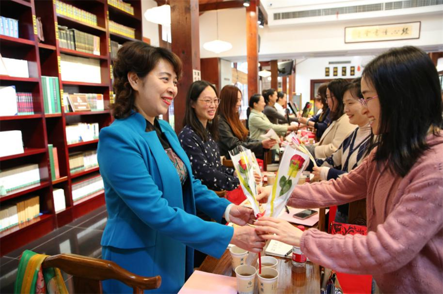 在诵读分享环节,女职工代表朗诵了《赞美你,新时代的女性》《花之歌》等诗歌,分享了亲子阅读故事《读书这件小事》,她们抒发情怀、分享感动、感悟人生。