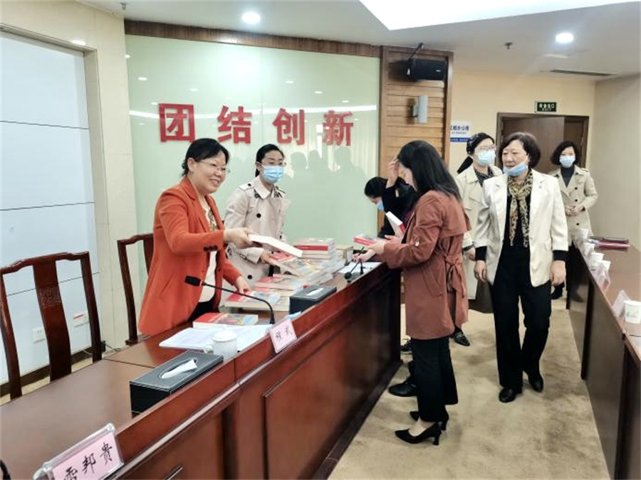 为深入学习宣传《习近平走进百姓家》,引导女干部职工和家庭深刻领悟“两个确立”的决定性意义,增强“四个意识”、坚定“四个自信”、做到“两个维护”,感党恩听党话跟党走,4月10日,在“4·23世界读书日”到来之前,省委统战部机关妇委会开展图书发放活动,副部长程武出席讲话,并亲自为女干部职工发放图书。
