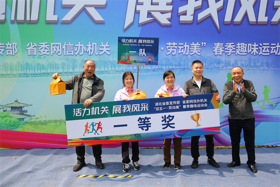 在全党深入开展学习贯彻习近平新时代中国特色社会主义思想主题教育伊始,为进一步展现宣传干部职工奋进新征程、建功新时代的良好精神风貌,培养积极工作、健康生活的团结奋进氛围,4月7日,省委宣传部、省委网信办机关在东湖落雁岛景区举办了一场以“活力机关 展我风采”为主题的“迎五一·劳动美”春季趣味运动会。