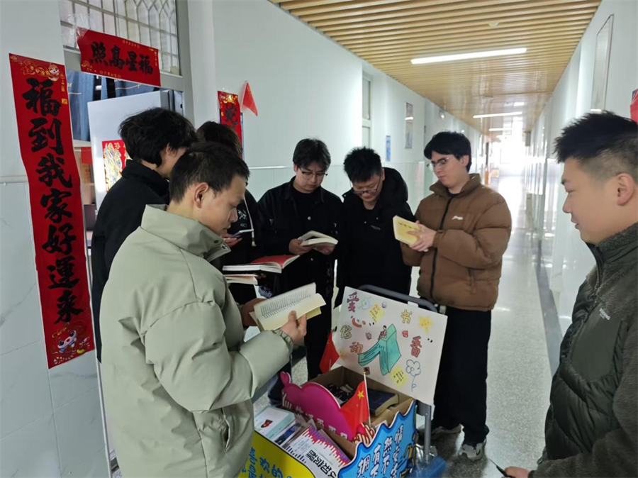 武汉职业技术学院光电与信息工程学院志愿者在校内“笃学”一站式学生社区举行“书香之约·流动书摊”志愿服务活动,志愿者们以“流动书摊”的形式打造社区图书借阅平台,举办阅读分享会。