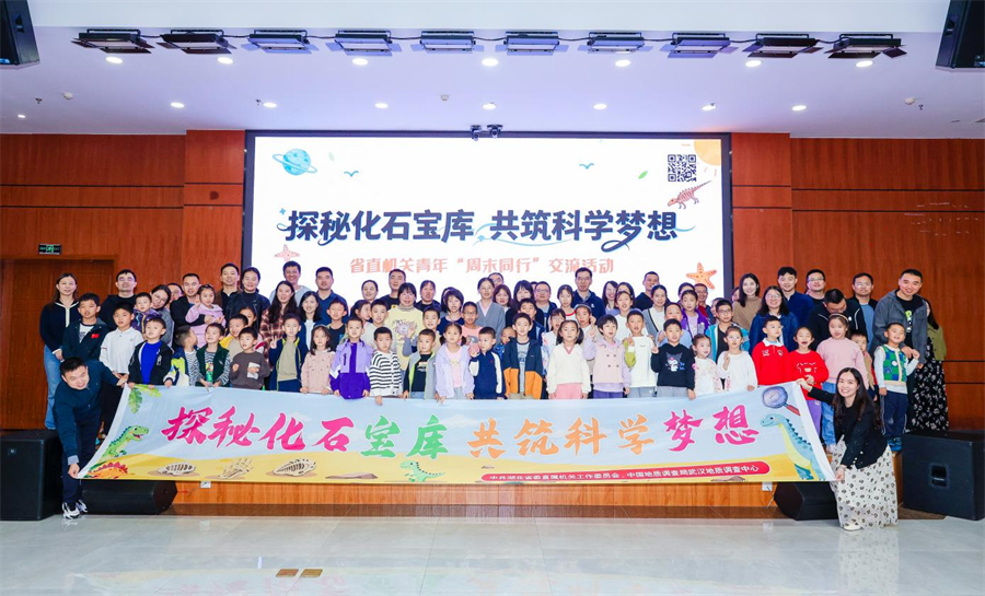 10月18日下午,由省直机关团工委、中国地质调查局武汉地质调查中心联合举办的省直机关青年“周末同行”亲子公益活动在武汉地质调查中心龙化石博物馆举行。本次活动以“探秘化石宝库 共筑科学梦想”为主题,吸引了50余组省直机关干部职工家庭积极参与。