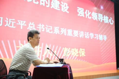 彭晓保教授以坚持和发展中国特色社会主义为主线,以中国梦为目标,以“五位一体”、“四个全面”为战略关键,以五大发展理念为引领,以为人民造福为根本,剖析了习近平总书记400多篇讲话精神,并从“富民强国,关键在党”、“化解挑战、必须强党”、“突出重点、科学建党”三个方面解读习总书记全面从严治党的方针与政策。
