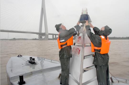 找寻航标这项工作虽是个体力活儿,可也是个技术活儿,经验丰富的人一听说是哪座标志被冲走了,就能凭借多年的航道维护工作经验判断,标志大概现在在什么地方。白天找寻标志还相对容易,但要是搁在晚上,如果航标灯失常了,不能通过一闪一闪的航标灯判断的话,那可真是跟大海捞针有得一比。狂风、骤雨、激流、疲劳、视线不佳等,都是深夜出航要克服的困难。可即便是再难,航道人们也不畏惧,因为他们知道,如果晚上不迅速找回,丢失的航标就这样随波逐浪的漂流会给航道通航带来很多未知的风险,一整夜的时间也不知会漂到何处。