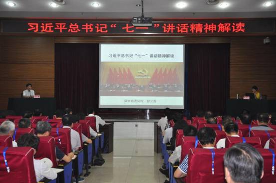 7月7日,省委党校校中心组(扩大)专题学习习近平总书记在庆祝中国共产党成立95周年大会上的重要讲话精神,常务副校长陶良虎主持会议并讲话,校委中心组成员、各部门负责人参加了学习。