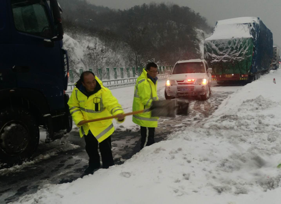 早在雪情到来之前,随岳管理处提前部署,召开"鄂湘两省疏堵保畅联席工作会",开展"防冻防滑跨省除雪保畅联合应急演练",签订"鄂湘两省荆岳大桥区域联合疏堵保畅工作协议",形成两省路路、路警、路企、路地多方整体联动、科学调度、信息互通、便民高效的保畅运转机制学;全体处领导按照领导一线督导工作计划,坚持靠前指挥、蹲点值守;各基层单位责任人迅速集结,明确工作任务,分兵把守、分段负责、分类指导;机关张兵突击队及党员先锋队24小时待命,坚守工作岗位,严阵以待、全力应对,切实做到责任到位、措施到位、落实到位,确保道路安全畅通。