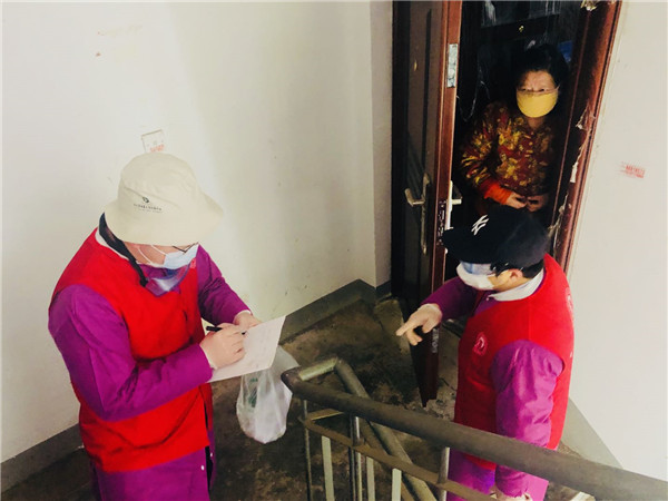 除了参与社区志愿服务,我还下沉到单位所在武昌区惠誉花园社区,开展住户情况摸排、路口封控、团购发放生活物资等工作。2月21日,我参与社区部署的“扫楼”排查住户健康情况工作。老旧社区的小高层没有电梯,全靠双脚爬上爬下,半天下来,衣服湿透,双腿酸软。我排查的路灯宿舍有一位独居婆婆,她向我反映买菜不便、手机团购又不会操作,我当场承诺一定帮她解决困难。“扫楼”结束后,我第一时间向社区汇报排查中发现的问题,特别提起了老婆婆的情况,请社区重点关注。中午来不及吃饭,我带着蔬菜包再次来到老婆婆家。在门外,我听到婆婆家电视声音开得很大,打电话又没人接,原来婆婆听力不好,我坚持敲门20多分钟后她才开门。我把蔬菜包交到婆婆手中,又联系到与她不同住的女儿,并把她拉到团购群里,同时告诉婆婆已请社区志愿者专门负责为她送菜上门,有事情就和我联系。下午,我又立即投入到搬运分送爱心菜的工作中。一天下来走了2万多步,腰腿酸痛不已。由于本身患有严重的腰椎间盘突出症,平时一直小心翼翼担心复发,但在抗击疫情过程中,我始终咬牙坚持,从没有向任何人提起过,因为我谨记自己是一名共产党员,个人的困难都是小问题,群众的困难可是关系到几百个家庭的大问题,职责所在,疫情不退,我决不休。