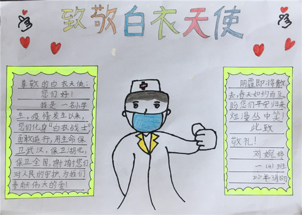 一场疫情让女儿明白了很多道理,渐渐地她学会了制作小报向逆行疫场的“白衣天使”致敬,认真朗诵诗歌《致我的朋友们》歌颂逆行者。她还曾发朋友圈,写道:“我停课不停学,为武汉加油,为中国加油!”。而我则回复:“每个人做好自己的事情,就是在为这个城市加油!我们都是这个城市的守护者!”