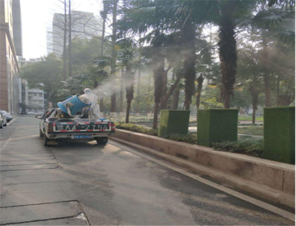 1月29日起,厅后勤中心制定了日常卫生消毒打卡表,聘请专业公司对机关大院全面杀毒,确保全方位无死角防控。