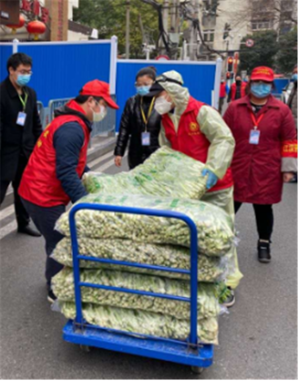 交通管制期间,社区居民缺了哪些生活急需品或是常备药用完了,朱航同志都会帮助他们采买应急,全力保障在家的居民生活有序、身体健康。在和队友并肩作战时,他注意到盒饭无法保温,后续进餐队员吃不上热饭,就从自己家中拿来保温袋给队友使用。热心帮助社区居民与队友的背后,朱航因搬运物资和长时间站立,导致椎间盘突出的老毛病复发,他忍着疼痛、默不作声地勒紧腰带继续坚持工作。